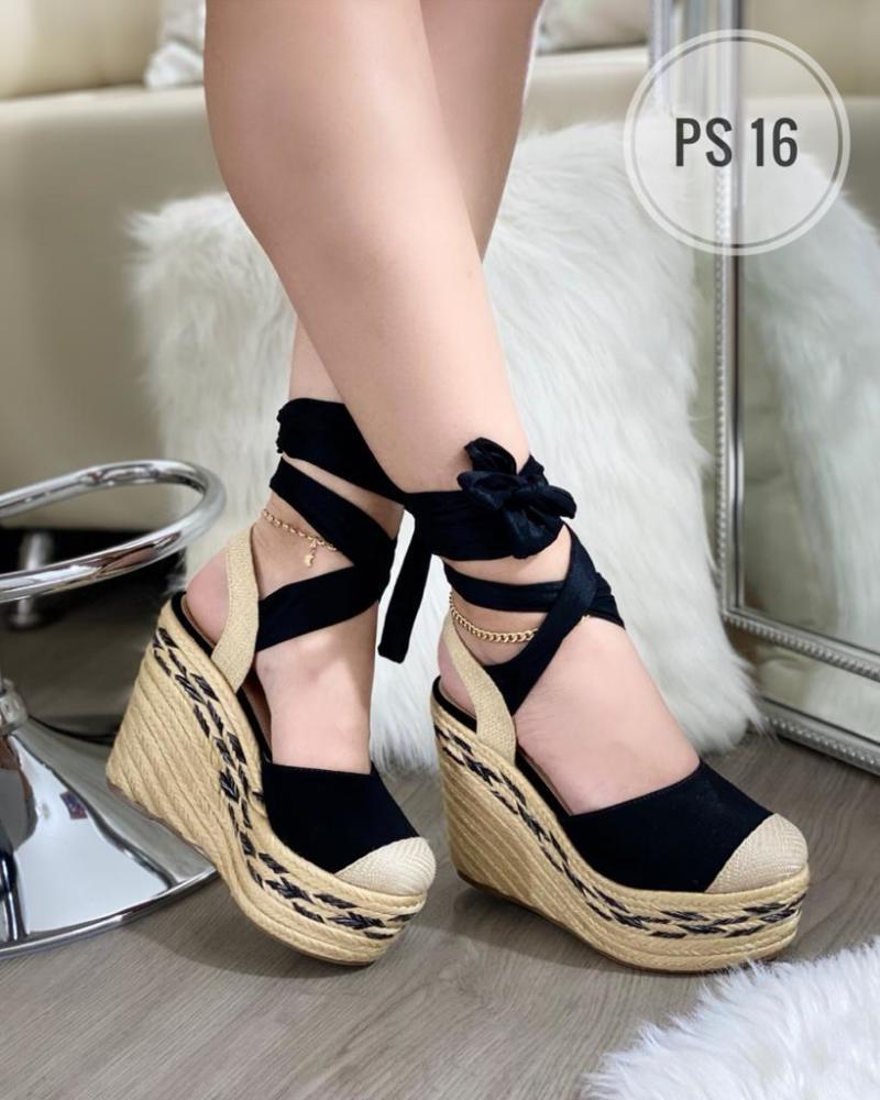 Sandalia alta plataforma yute moño tiras